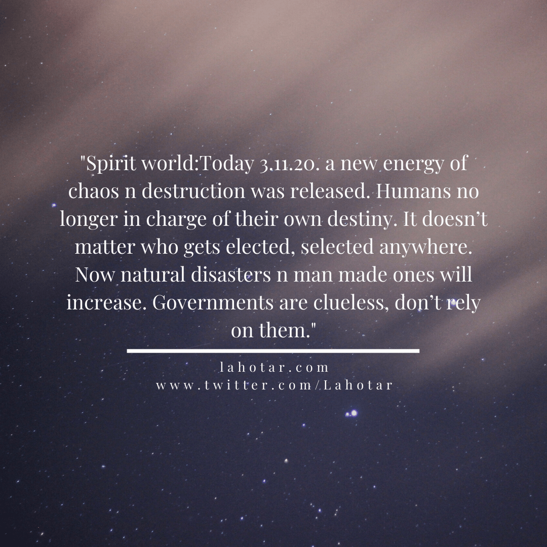 Spirit world:Today 3.11.20. a new energy of chaos… Posted on November 19, 2020 0 m read Share this article 0